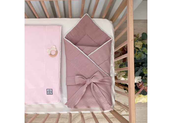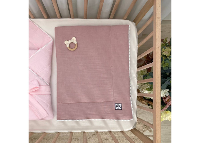 Дитячий мусліновий плед-конверт з напівбубонами і бантом. Розмір 80х100 см +- 2см. Наповнювач - силіконізоване волокно.