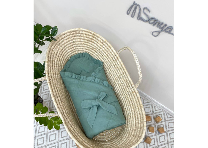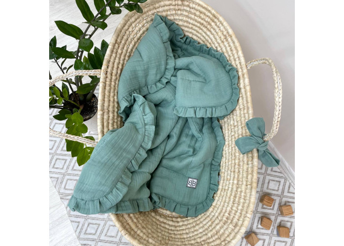 Дитячий мусліновий плед-конверт з рюшами і бантом.