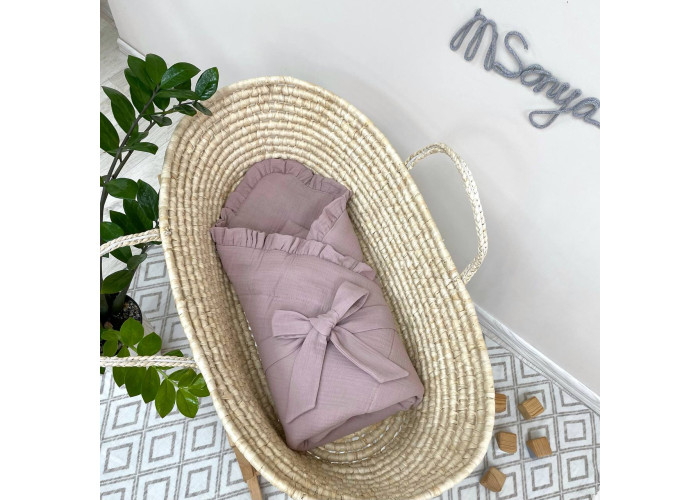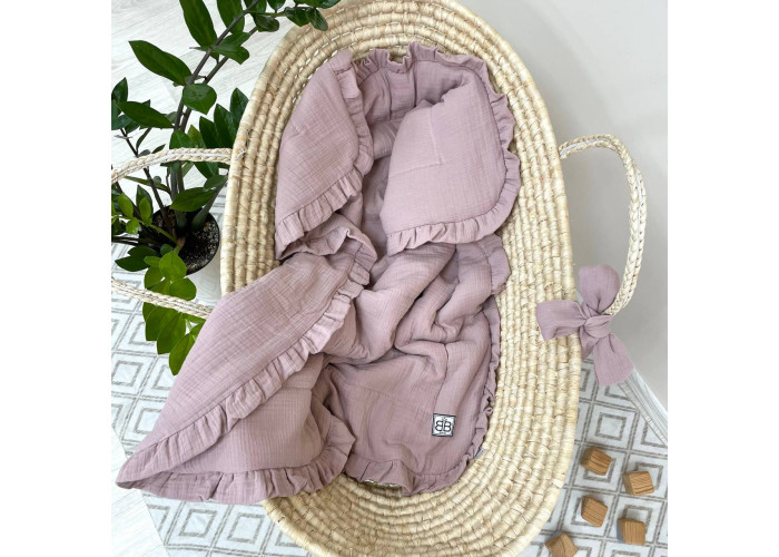 Дитячий мусліновий плед-конверт з рюшами і бантом.