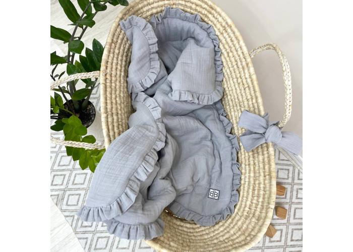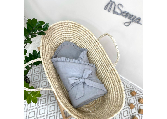 Дитячий мусліновий плед-конверт з рюшами і бантом.