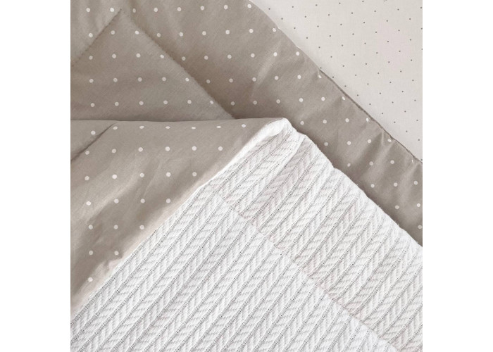 Дитячий двосторонній плед виготовлений із двох тканин: з попліну, з іншої сторони – трикотажної тканини "Косичка" наповнювач - силікон. На дотик-це рельєфний, м'який і досить теплий і щільний виріб.