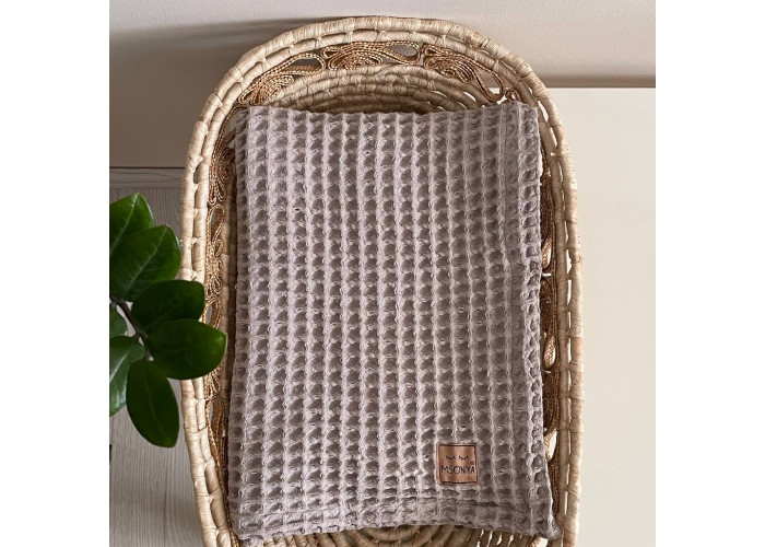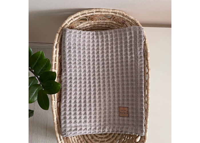 Дитячий плед TM Msonya з високоякісної бавовняної тканини, щільна, дуже приємна на дотик, зберігає колір після багаторазового прання. Особлива структура плетіння волокна дає унікальний малюнок об'ємної клітини. Завдяки такій особливості тканина м'яка, повітряна і добре вбирає вологу. Відмінно пропускає повітря.