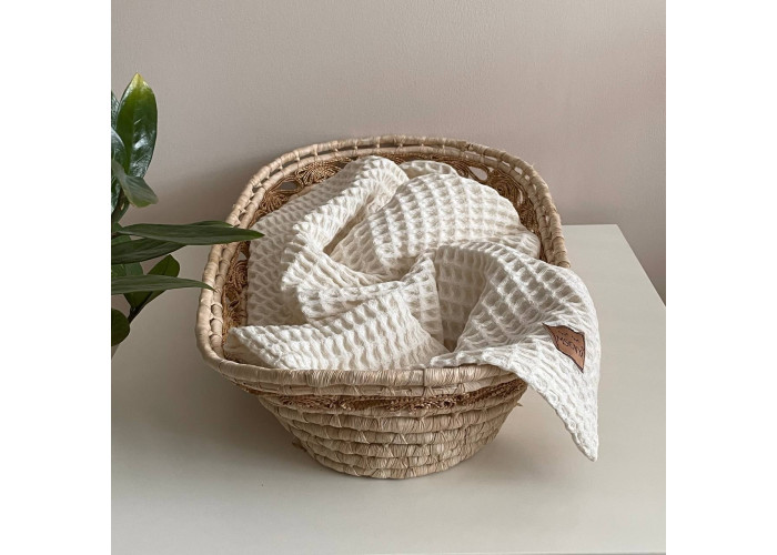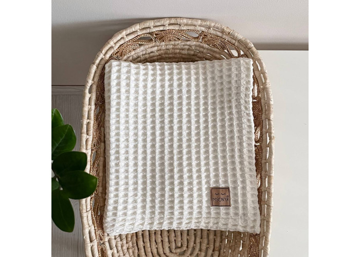 Дитячий плед TM Msonya з високоякісної бавовняної тканини, щільна, дуже приємна на дотик, зберігає колір після багаторазового прання. Особлива структура плетіння волокна дає унікальний малюнок об'ємної клітини. Завдяки такій особливості тканина м'яка, повітряна і добре вбирає вологу. Відмінно пропускає повітря.