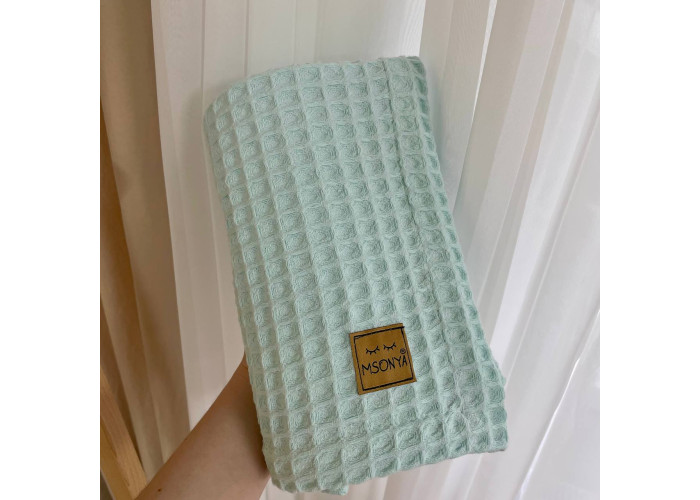 Дитячий плед TM Msonya з високоякісної бавовняної тканини, щільна, дуже приємна на дотик, зберігає колір після багаторазового прання. Особлива структура плетіння волокна дає унікальний малюнок об'ємної клітини. Завдяки такій особливості тканина м'яка, повітряна і добре вбирає вологу. Відмінно пропускає повітря.