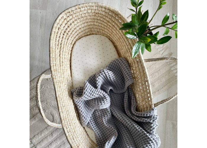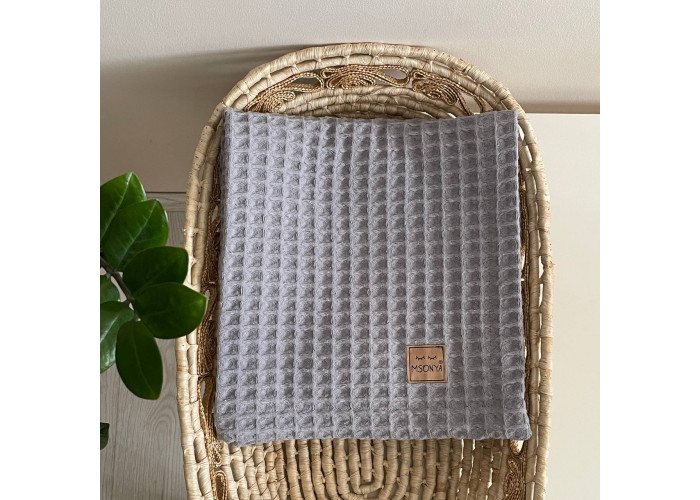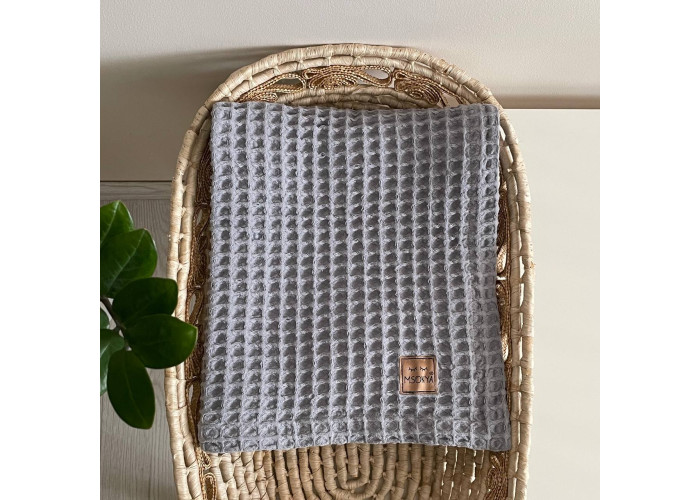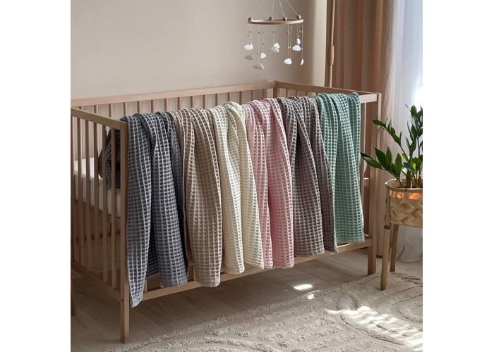 Дитячий плед TM Msonya з високоякісної бавовняної тканини, щільна, дуже приємна на дотик, зберігає колір після багаторазового прання. Особлива структура плетіння волокна дає унікальний малюнок об'ємної клітини. Завдяки такій особливості тканина м'яка, повітряна і добре вбирає вологу. Відмінно пропускає повітря.