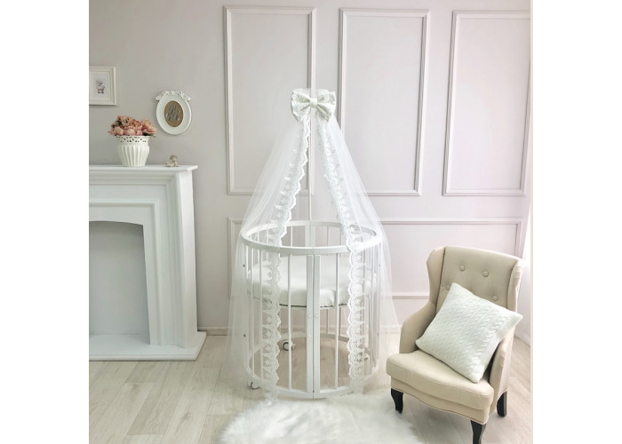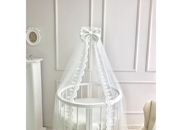 Виконаний з тоненької шестигранної легкої сіточки. Технологія в'язки розроблена фахівцями в області дитячих товарів. Завдяки такому підходу, балдахін прекрасно пропускає повітря, оберігаючи сон малюка від комах і вітру. Достатня прозорість дозволяє спостерігати за дитиною. Завдяки легкій тканині створюється особлива ніжна атмосфера дитячої кімнати.
