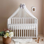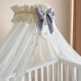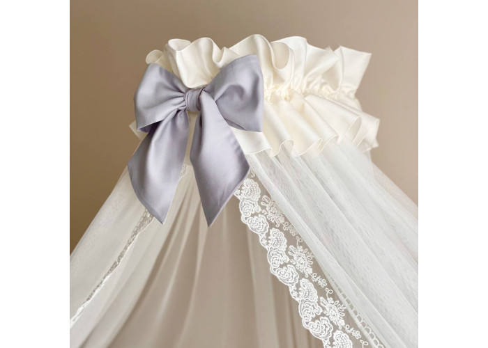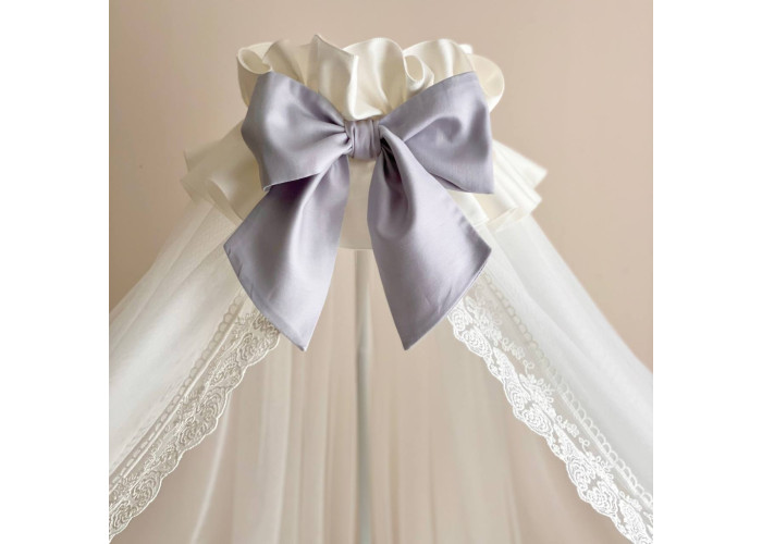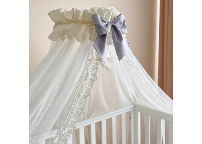 Виконаний з тоненької шестигранної легкої сіточки із мереживом, прикрашений бантом. Технологія в'язки розроблена фахівцями в області дитячих товарів. Завдяки такому підходу, балдахін прекрасно пропускає повітря, оберігаючи сон малюка від комах і вітру. Достатня прозорість дозволяє спостерігати за дитиною. Завдяки легкій тканині створюється особлива ніжна атмосфера дитячої кімнати.