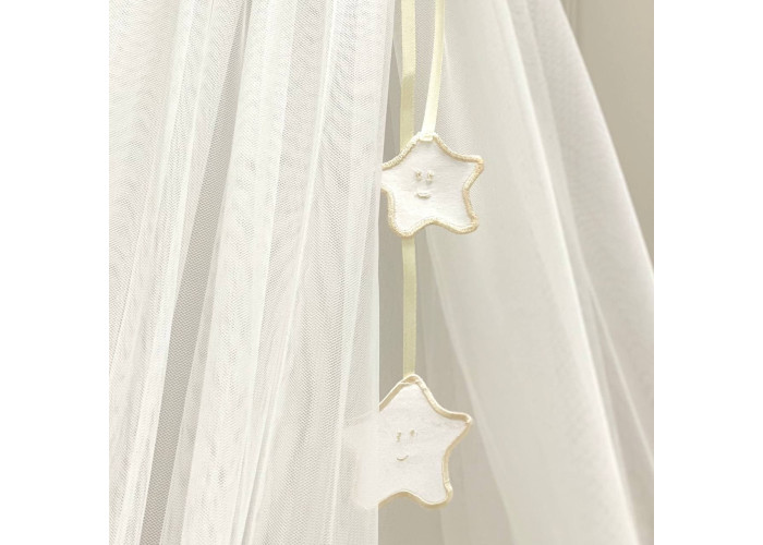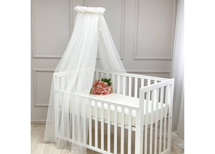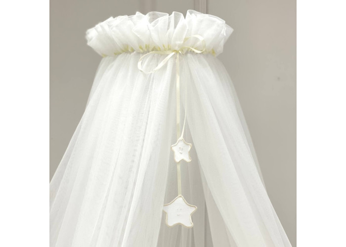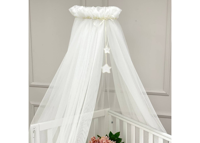 Виконаний з тоненької шестигранної легкої сіточки. Технологія в'язки розроблена фахівцями в області дитячих товарів. Завдяки такому підходу, балдахін прекрасно пропускає повітря, оберігаючи сон малюка від комах і вітру. Достатня прозорість дозволяє спостерігати за дитиною. Завдяки легкій тканині створюється особлива ніжна атмосфера дитячої кімнати.