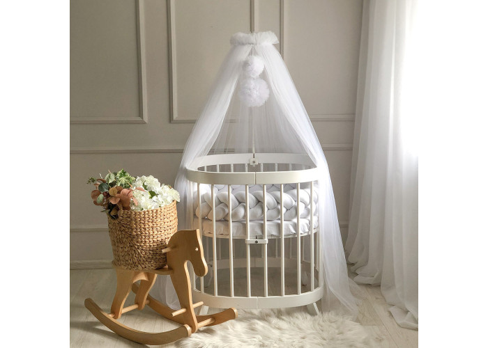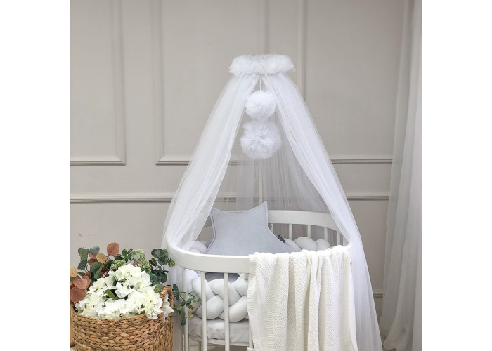Виконаний з тоненької шестигранної легкої сіточки. Технологія в'язки розроблена фахівцями в області дитячих товарів. Завдяки такому підходу, балдахін прекрасно пропускає повітря, оберігаючи сон малюка від комах і вітру. Достатня прозорість дозволяє спостерігати за дитиною. Завдяки легкій тканині створюється особлива ніжна атмосфера дитячої кімнати.