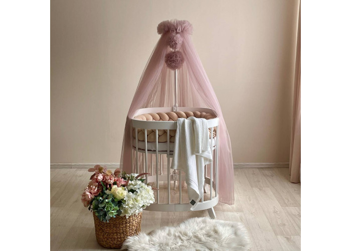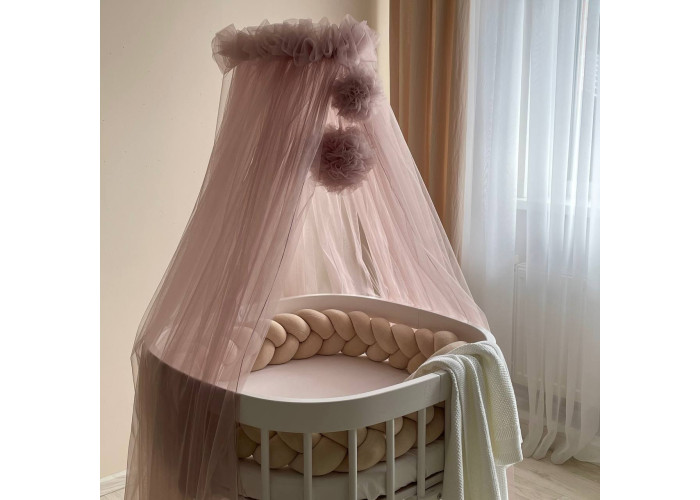 Виконаний з тоненької шестигранної легкої сіточки. Технологія в'язки розроблена фахівцями в області дитячих товарів. Завдяки такому підходу, балдахін прекрасно пропускає повітря, оберігаючи сон малюка від комах і вітру. Достатня прозорість дозволяє спостерігати за дитиною. Завдяки легкій тканині створюється особлива ніжна атмосфера дитячої кімнати.