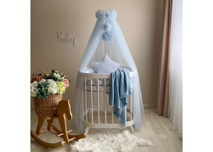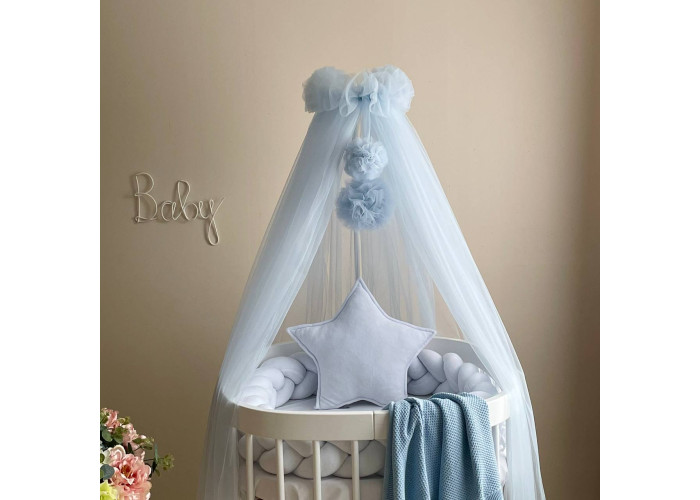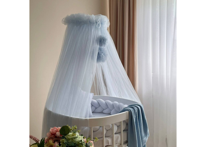 Виконаний з тоненької шестигранної легкої сіточки. Технологія в'язки розроблена фахівцями в області дитячих товарів. Завдяки такому підходу, балдахін прекрасно пропускає повітря, оберігаючи сон малюка від комах і вітру. Достатня прозорість дозволяє спостерігати за дитиною. Завдяки легкій тканині створюється особлива ніжна атмосфера дитячої кімнати.