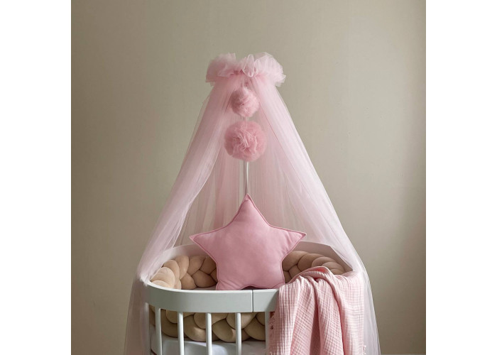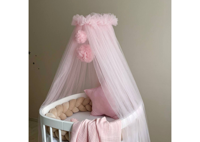 Виконаний з тоненької шестигранної легкої сіточки. Технологія в'язки розроблена фахівцями в області дитячих товарів. Завдяки такому підходу, балдахін прекрасно пропускає повітря, оберігаючи сон малюка від комах і вітру. Достатня прозорість дозволяє спостерігати за дитиною. Завдяки легкій тканині створюється особлива ніжна атмосфера дитячої кімнати.
