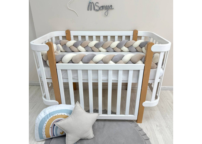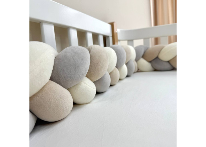 Стильний, м'який, приємний на дотик захист, не обмежує доступ повітря в ліжечко, зручний, не займає багато місця. Підходить для прямокутних, овальних та круглих ліжечок. Коли малюк підростає, незамінна для ігор та для декору дитячої кімнати. До народження малюка можна використовувати як зручну подушку для вагітної мами.