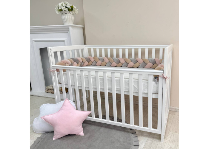 Стильний, м'який, приємний на дотик захист, не обмежує доступ повітря в ліжечко, зручний, не займає багато місця. Підходить для прямокутних, овальних та круглих ліжечок. Коли малюк підростає, незамінна для ігор та для декору дитячої кімнати. До народження малюка можна використовувати як зручну подушку для вагітної мами.
