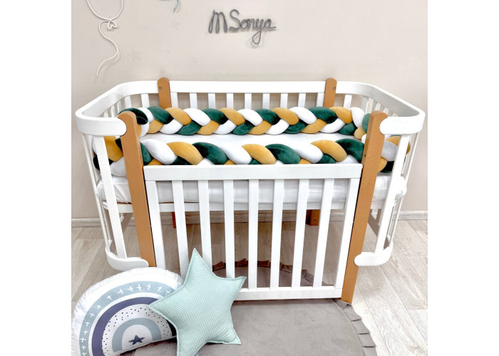 Стильний, м'який, приємний на дотик захист, не обмежує доступ повітря в ліжечко, зручний, не займає багато місця. Підходить для прямокутних, овальних та круглих ліжечок. Коли малюк підростає, незамінна для ігор та для декору дитячої кімнати. До народження малюка можна використовувати як зручну подушку для вагітної мами.
