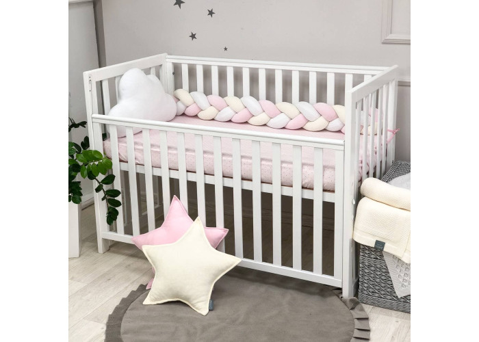 Стильний, м'який, приємний на дотик захист, не обмежує доступ повітря в ліжечко, зручний, не займає багато місця. Підходить для прямокутних, овальних та круглих ліжечок. Коли малюк підростає, незамінна для ігор та для декору дитячої кімнати. До народження малюка можна використовувати як зручну подушку для вагітної мами.