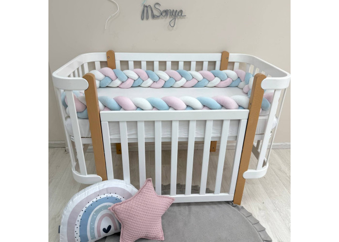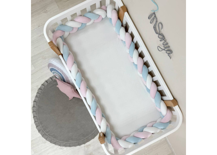 Стильний, м'який, приємний на дотик захист, не обмежує доступ повітря в ліжечко, зручний, не займає багато місця. Підходить для прямокутних, овальних та круглих ліжечок. Коли малюк підростає, незамінна для ігор та для декору дитячої кімнати. До народження малюка можна використовувати як зручну подушку для вагітної мами.