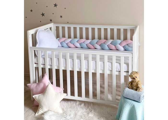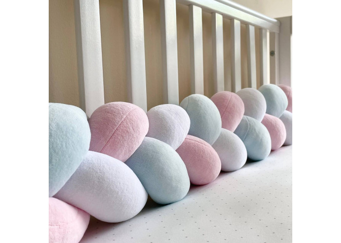 Стильний, м'який, приємний на дотик захист, не обмежує доступ повітря в ліжечко, зручний, не займає багато місця. Підходить для прямокутних, овальних та круглих ліжечок. Коли малюк підростає, незамінна для ігор та для декору дитячої кімнати. До народження малюка можна використовувати як зручну подушку для вагітної мами.