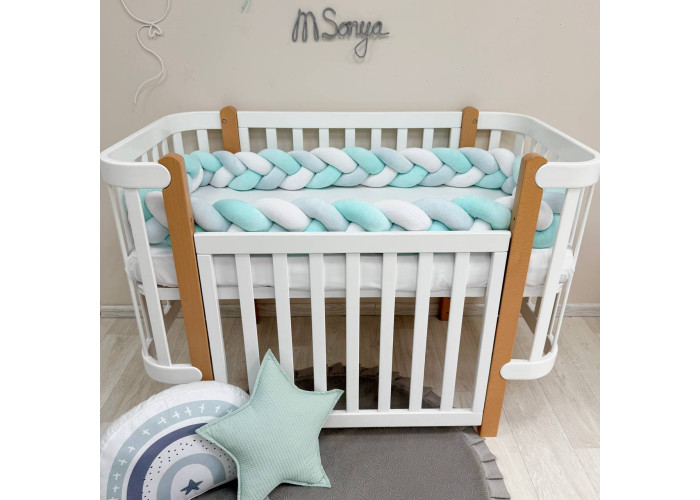 Стильний, м'який, приємний на дотик захист, не обмежує доступ повітря в ліжечко, зручний, не займає багато місця. Підходить для прямокутних, овальних та круглих ліжечок. Коли малюк підростає, незамінна для ігор та для декору дитячої кімнати. До народження малюка можна використовувати як зручну подушку для вагітної мами.