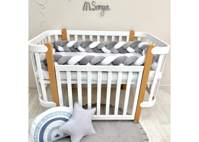 Стильний, м'який, приємний на дотик захист, не обмежує доступ повітря в ліжечко, зручний, не займає багато місця. Підходить для прямокутних, овальних та круглих ліжечок. Коли малюк підростає, незамінна для ігор та для декору дитячої кімнати. До народження малюка можна використовувати як зручну подушку для вагітної мами.