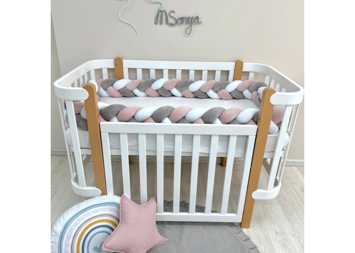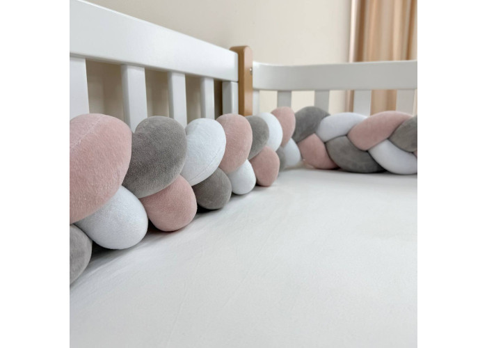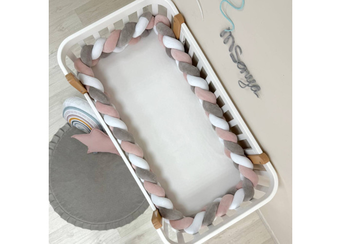 Стильний, м'який, приємний на дотик захист, не обмежує доступ повітря в ліжечко, зручний, не займає багато місця. Підходить для прямокутних, овальних та круглих ліжечок. Коли малюк підростає, незамінна для ігор та для декору дитячої кімнати. До народження малюка можна використовувати як зручну подушку для вагітної мами.