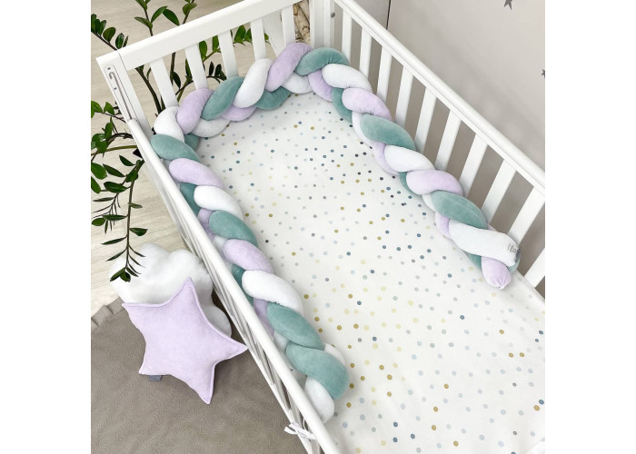 Стильний, м'який, приємний на дотик захист, не обмежує доступ повітря в ліжечко, зручний, не займає багато місця. Підходить для прямокутних, овальних та круглих ліжечок. Коли малюк підростає, незамінна для ігор та для декору дитячої кімнати. До народження малюка можна використовувати як зручну подушку для вагітної мами.