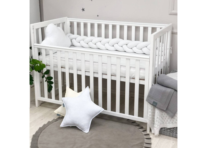 Стильний, м'який, приємний на дотик захист, не обмежує доступ повітря в ліжечко, зручний, не займає багато місця. Підходить для прямокутних, овальних та круглих ліжечок. Коли малюк підростає, незамінна для ігор та для декору дитячої кімнати. До народження малюка можна використовувати як зручну подушку для вагітної мами.