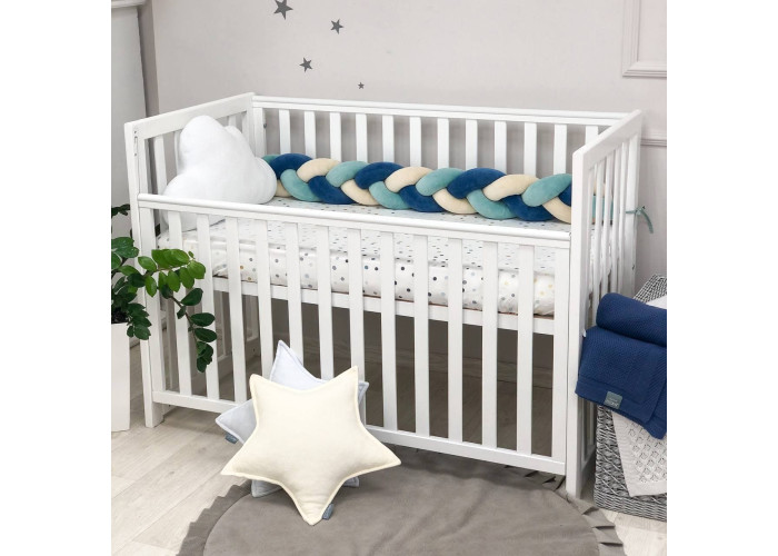 Стильний, м'який, приємний на дотик захист, не обмежує доступ повітря в ліжечко, зручний, не займає багато місця. Підходить для прямокутних, овальних та круглих ліжечок. Коли малюк підростає, незамінна для ігор та для декору дитячої кімнати. До народження малюка можна використовувати як зручну подушку для вагітної мами.