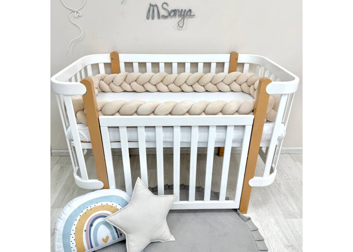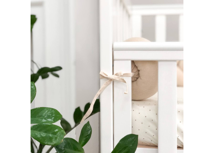 Стильний, м'який, приємний на дотик захист, не обмежує доступ повітря в ліжечко, зручний, не займає багато місця. Підходить для прямокутних, овальних та круглих ліжечок. Коли малюк підростає, незамінна для ігор та для декору дитячої кімнати. До народження малюка можна використовувати як зручну подушку для вагітної мами.
