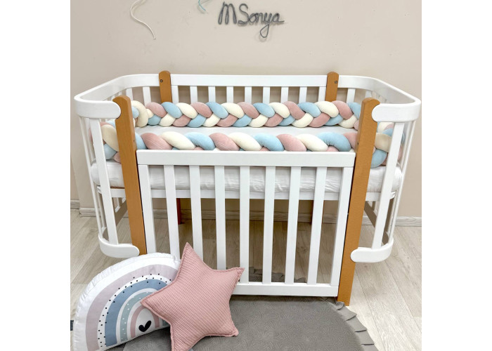 Стильний, м'який, приємний на дотик захист, не обмежує доступ повітря в ліжечко, зручний, не займає багато місця. Підходить для прямокутних, овальних та круглих ліжечок. Коли малюк підростає, незамінна для ігор та для декору дитячої кімнати. До народження малюка можна використовувати як зручну подушку для вагітної мами.