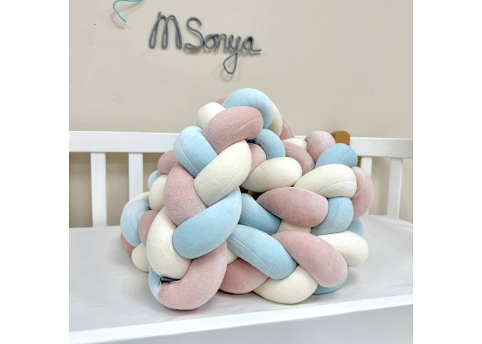 Бортик-коса розміром 360 +/- 2см. Висота 15 +/- 2 см. Матеріал - велюр, наповнювач - холлофайбер.