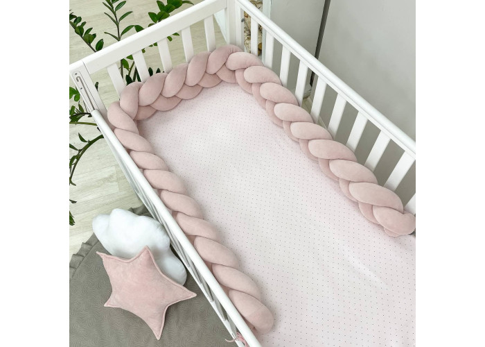 Стильний, м'який, приємний на дотик захист, не обмежує доступ повітря в ліжечко, зручний, не займає багато місця. Підходить для прямокутних, овальних та круглих ліжечок. Коли малюк підростає, незамінна для ігор та для декору дитячої кімнати. До народження малюка можна використовувати як зручну подушку для вагітної мами.