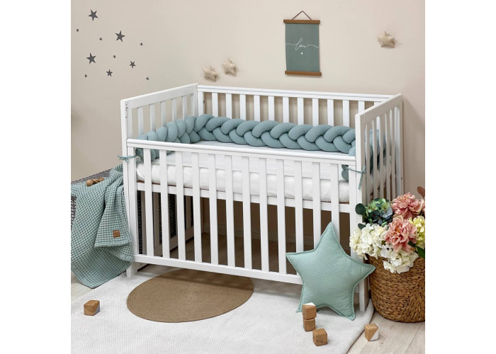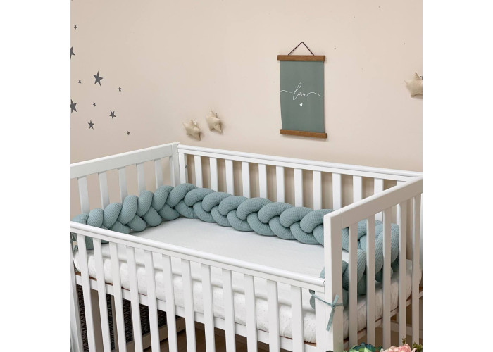 Стильний, м'який, приємний на дотик захист, не обмежує доступ повітря в ліжечко, зручний, не займає багато місця. Підходить для прямокутних, овальних та круглих ліжечок. Коли малюк підростає, незамінна для ігор та для декору дитячої кімнати.До народження малюка, можна використовувати як зручну подушку для вагітної мами.