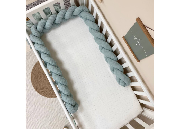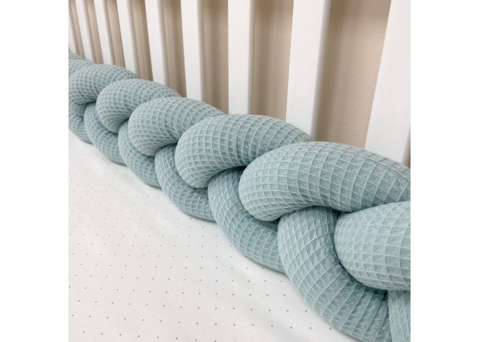 Бортик-Бортик-коса розміром 230 +/- 2см. Висота 15 +/- 2 см. Матеріал - вафельна тканина, наповнювач - холлофайбер.