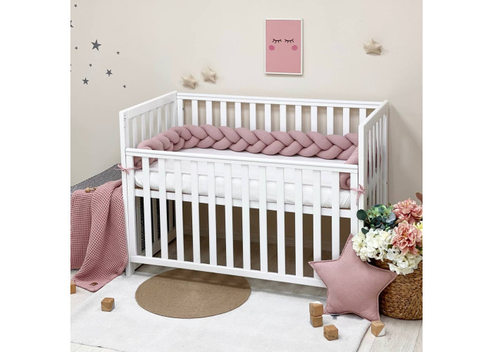 Стильний, м'який, приємний на дотик захист, не обмежує доступ повітря в ліжечко, зручний, не займає багато місця. Підходить для прямокутних, овальних та круглих ліжечок. Коли малюк підростає, незамінна для ігор та для декору дитячої кімнати.До народження малюка, можна використовувати як зручну подушку для вагітної мами.