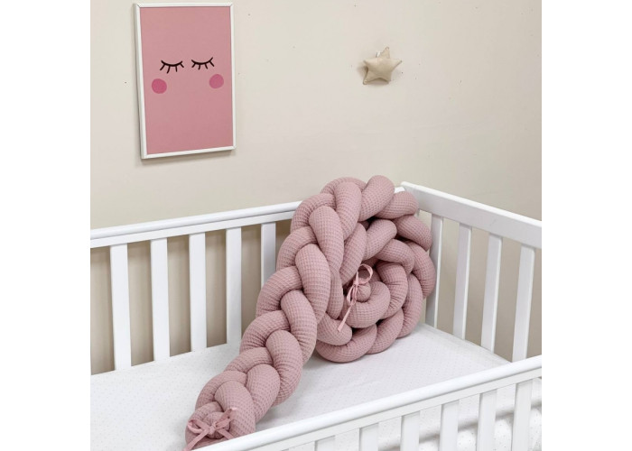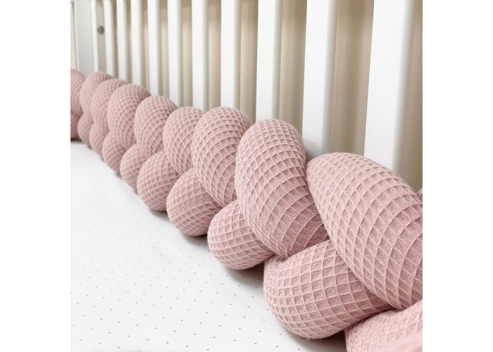 Бортик-Бортик-коса розміром 230 +/- 2см. Висота 15 +/- 2 см. Матеріал - вафельна тканина, наповнювач - холлофайбер.