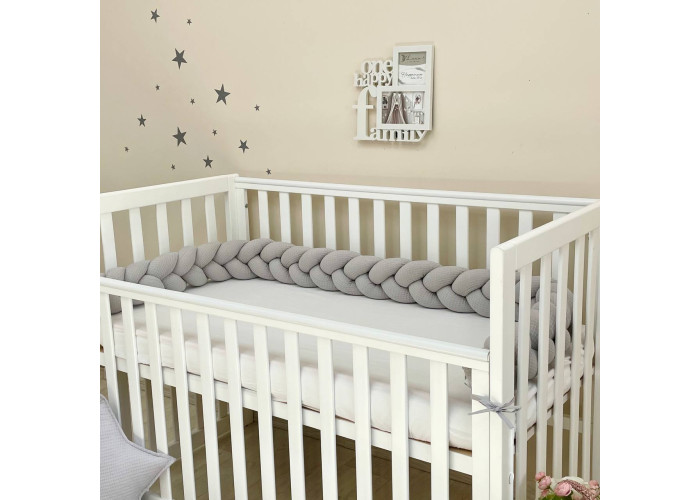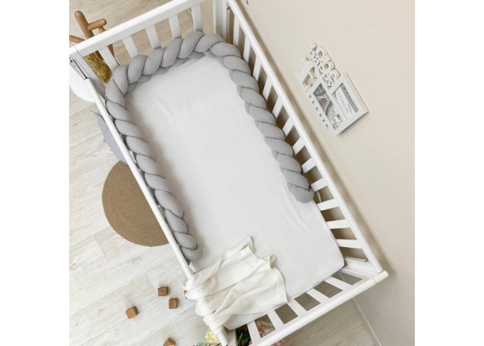 Стильний, м'який, приємний на дотик захист, не обмежує доступ повітря в ліжечко, зручний, не займає багато місця. Підходить для прямокутних, овальних та круглих ліжечок. Коли малюк підростає, незамінна для ігор та для декору дитячої кімнати.До народження малюка, можна використовувати як зручну подушку для вагітної мами.