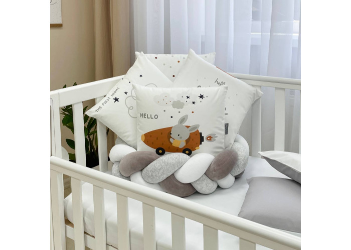 Матеріал комплекту: поплін, Бортик-коса - велюр.Наповнювач: силіконізоване волокно, холлофайбер.