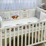 В комплект входить:Захист з подушечок на блискавці: 8 штук 30 х 32 см., 1 штука бортик-Бортик-коса 120 х 17 +/- 3 см. Простирадло на гумці, 120 Х 60 Х 15 см.