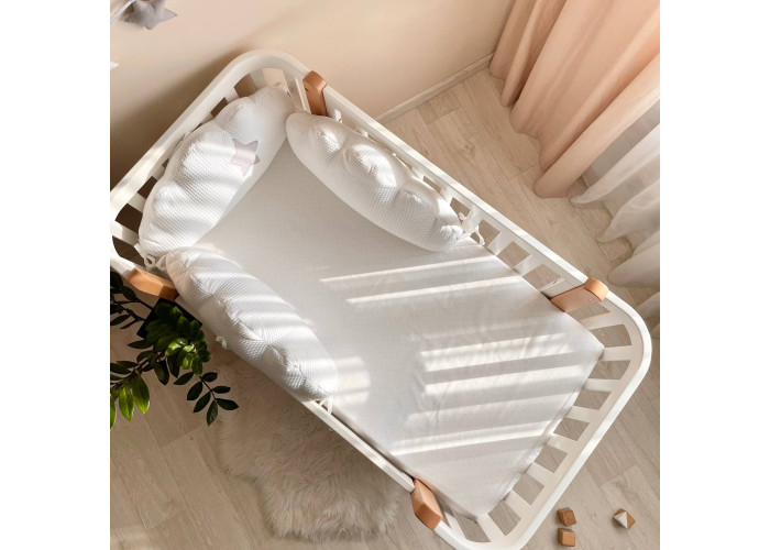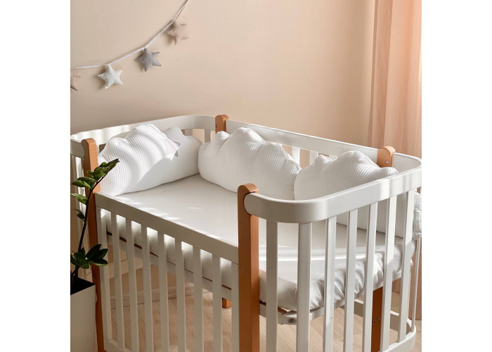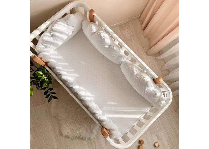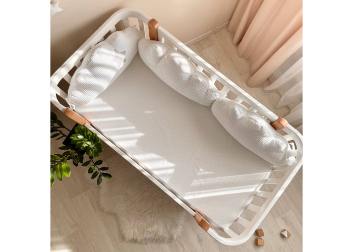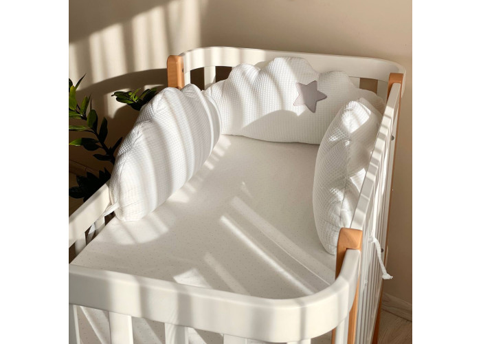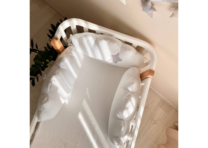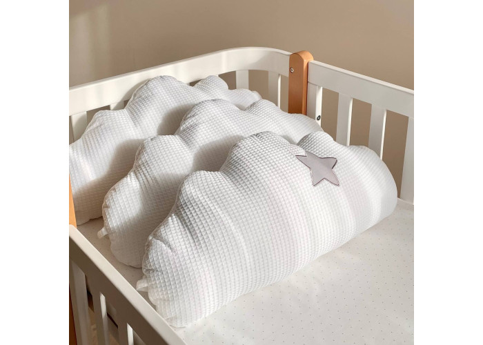 В комплект входить: бортики "Хмари" вафельні 3шт.Розмір 1 подушечки 30 х 60 +/- 2см.