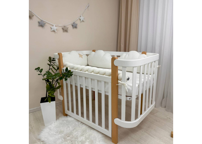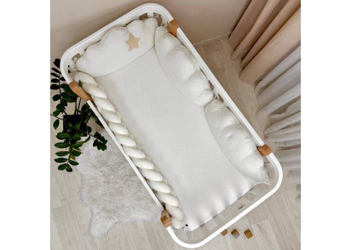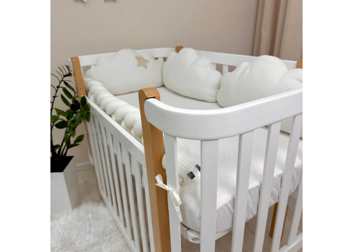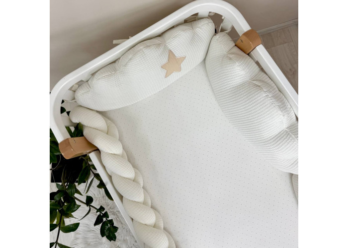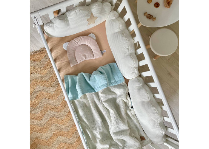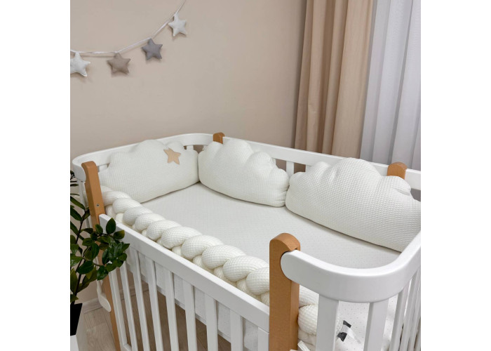 В комплект входить: бортики "Хмари" вафельні 3шт.Розмір 1 подушечки 30 х 60 +/- 2см.