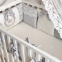 Бортики та простирадло пошиті із сатину. Простирадло на гумці ідеально повторює форму матраца в ліжку. Ecotton – екологічно чистий, гіпоалергенний наповнювач, створений на основі натуральних бавовняних волокон. Ecotton soft полегшений та вдосконалений спеціально для виготовлення ковдр та подушечок у ліжечко, на базі основних норм та вимог до постільних речей для новонароджених.