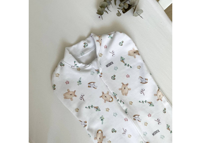 Європелюшка пошита з натурального матеріалу - трикотажа-рубчик, вона повторює форму тіла малюка, не сковує рухи, дозволяє з легкістю перевдягати дитину.