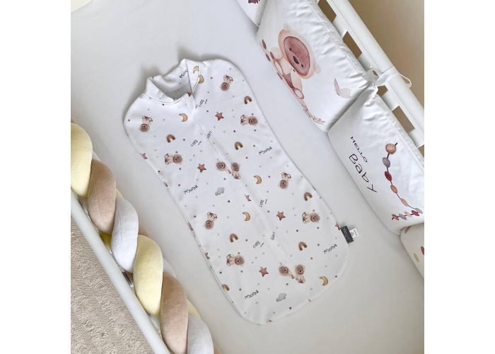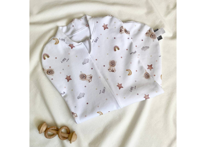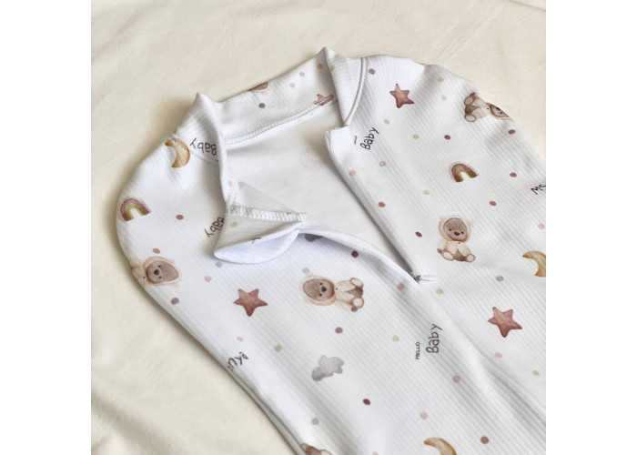 Європелюшка пошита з натурального матеріалу - трикотажа-рубчик, вона повторює форму тіла малюка, не сковує рухи, дозволяє з легкістю перевдягати дитину.