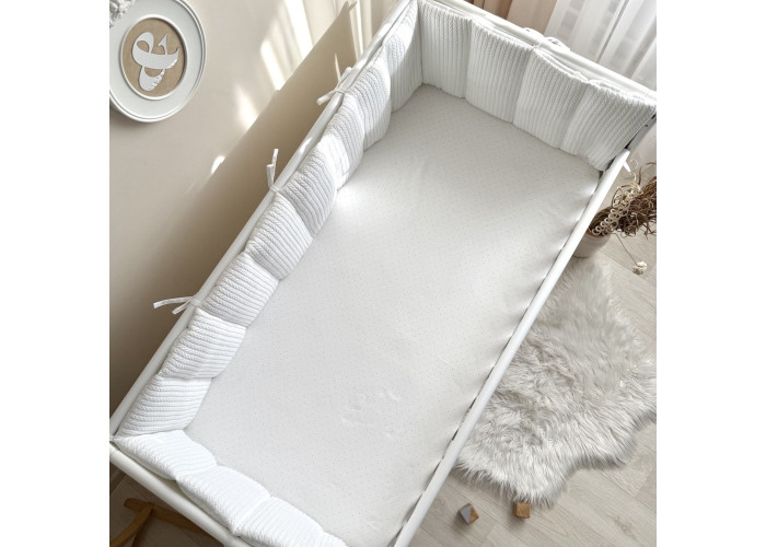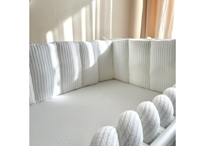 Фенс-бортики - новий різновид цілісних бортиків на три сторони ліжечка. За допомогою зав'язок вони кріпляться на стінки ліжечка, створюючі затишне "гніздечко" для сну немовляти.