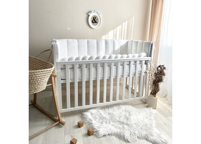 Бортики суцільні на три сторони ліжечка. Довжина 235 х 26 +/- 2см.