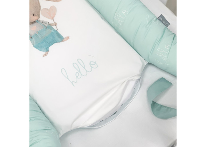 Гніздечко-кокон-це невеликий, ергономічний, плоский матрац з м'якими обмежувальними бортиками по всьому периметру заввишки 10 см. Тканина чохла: поплін (100% бавовна)