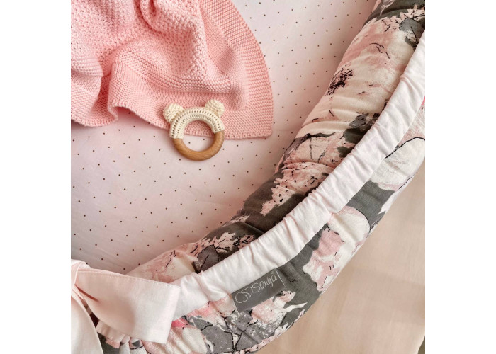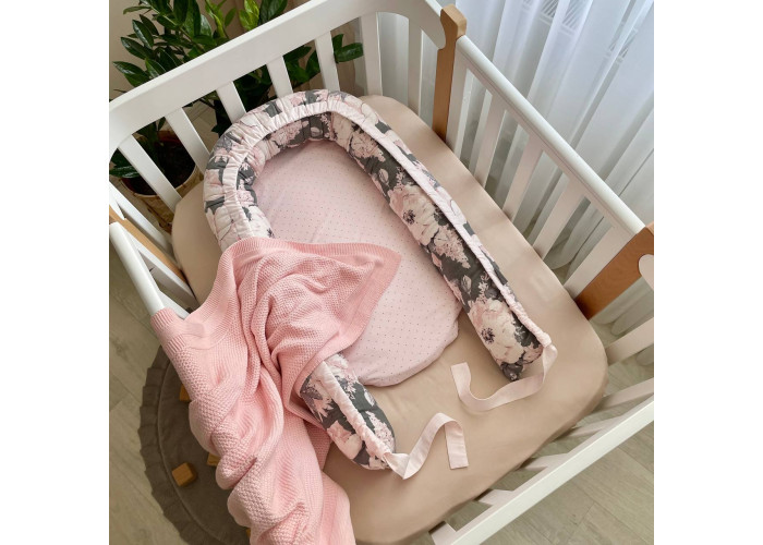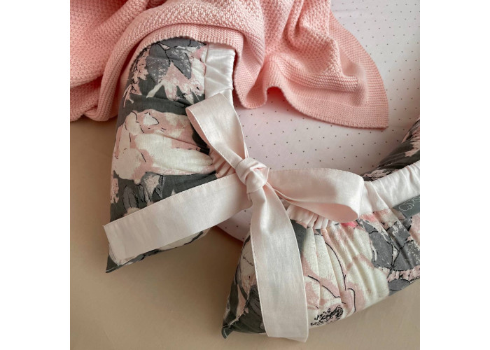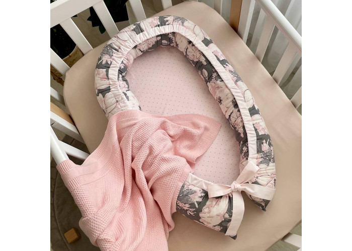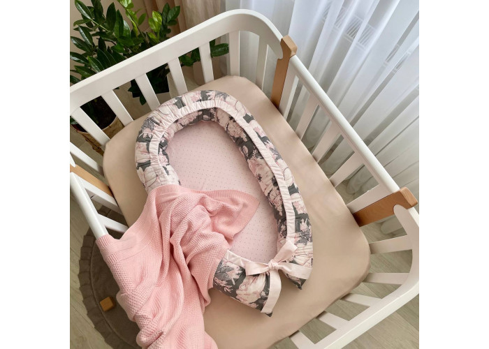 Наповнювач матраца - піна, пружний, сучасний, модифікований матеріал, який рівномірно розподіляє навантаження, завдяки чому малюк почуває себе затишно і комфортно. Чохол матраца пошитий з мікрофібри. Бортики можна стягнути спеціальною ниткою, яка вже вшита в кокон і зафіксувати бантом, таким чином можна зменшувати, або збільшувати розмір кокона-гніздечка.