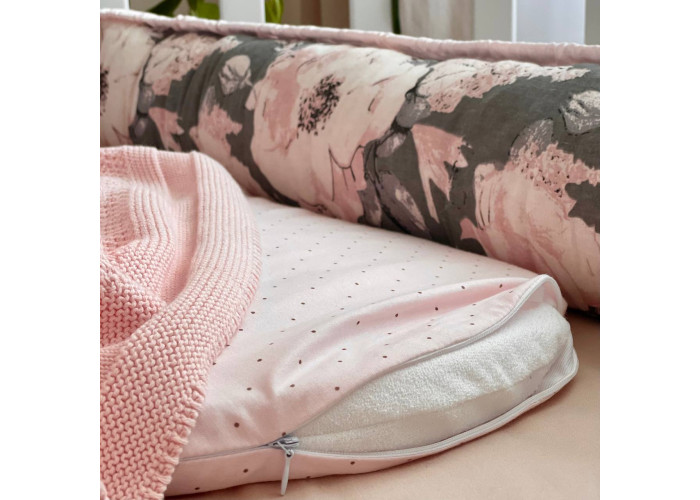 Гніздечко-кокон-це невеликий, ергономічний, плоский матрац з м'якими обмежувальними бортиками по всьому периметру заввишки 10 см. Тканина чохла: поплін (100% бавовна)