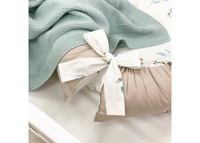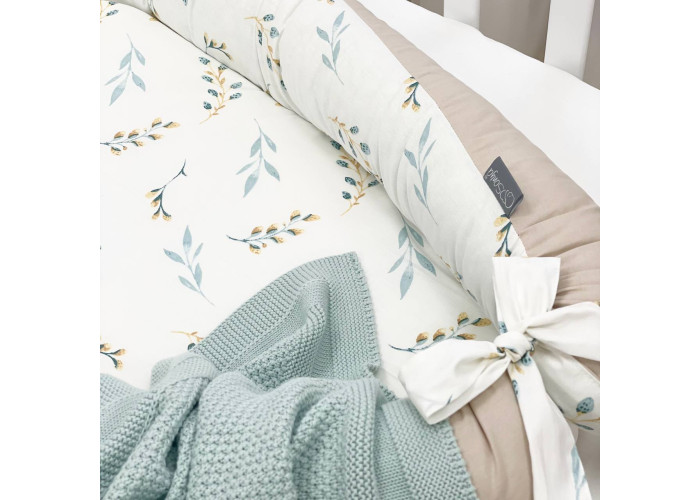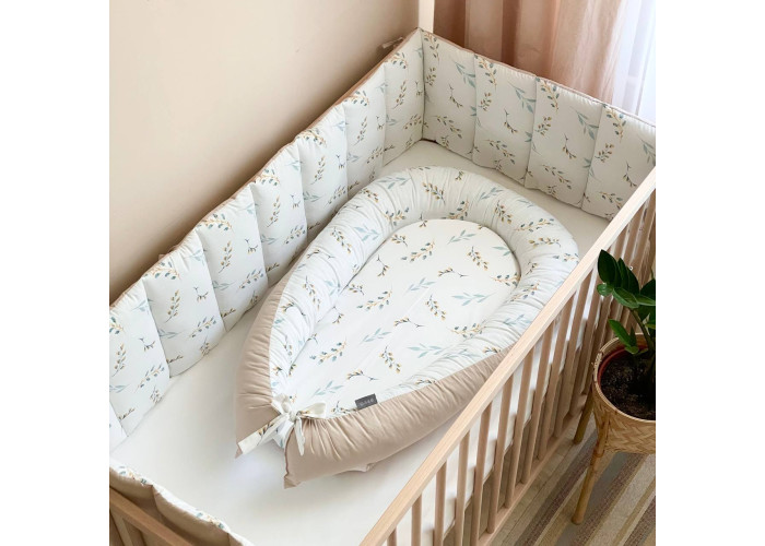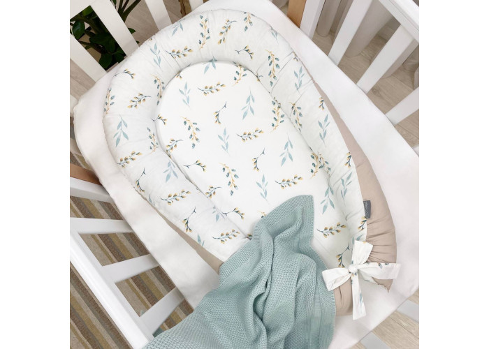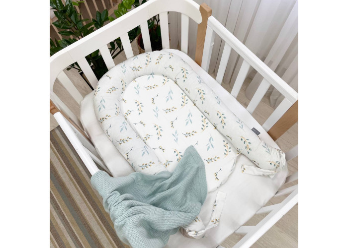 Гніздечко-кокон-це невеликий, ергономічний, плоский матрац з м'якими обмежувальними бортиками по всьому периметру заввишки 10 см. Тканина чохла: поплін (100% бавовна)